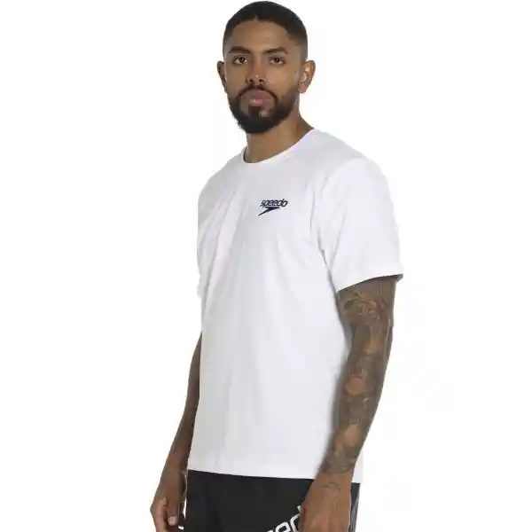 Conoce la Camiseta Manga Corta Suncoast Rush Para Hombre Esta Camiseta Blanca de Silueta Clásica y Cuello Redondo en Rib es Ideal Para Usar en tu Día a Día Con Jeans Siempre Que Quieras Sentirte Cómodo y Fresco o Puedes Usarla Para ir a Tus Entrenamientos en la Piscina o el Gimnasio Acompañado de Prendas Deportivas. Esta Camiseta Manga Corta Blanca Está Fabricada Con Los Más Altos Estándares de Calidad en Algodón 100% Para Brindar Comodidad y Frescura. Cuenta Con Estampado Playero en Colores Azul y Negro en la Parte Trasera y en el Frente Tiene Nuestro Icónico Logo Speedo Pequeño un Diseño Clásico Que Podrás Combinar Con Facilidad Con Otras Prendas.