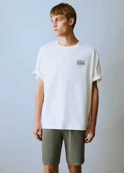 Cuello Redondo Dibujo Estampado en la Parte Trasera Diseño Recto Estampado Surf Manga Corta Tejido 100% Algodón Texto Estampado en el Pecho - 87047681_02.