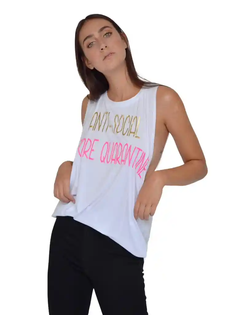 camiseta sin mangas estampada en vinilo textil. Talla unica.