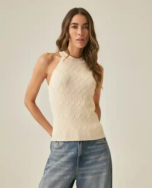 Femenino. Ajustado Cuello Halter en Viscosa 80% y Poliamida 20%. Patrón Mini Canal Denso Galga Liviana. Efecto Elástico. Tejido Acanalado. Placa Metálica Chevignon en Parte Superior de Espalda. Construcción Mini Canal Elástica. Silueta Ajustada Figura. Ean- 791H002Cru110103 Plu- 1111133228946.
