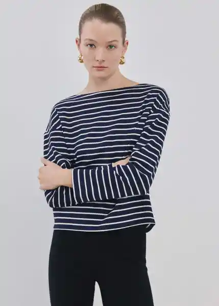 Cuello Barco Diseño Recto Estampado Rayas Manga Larga Sin Cierre Tejido 100% Algodón - 27065823_56.