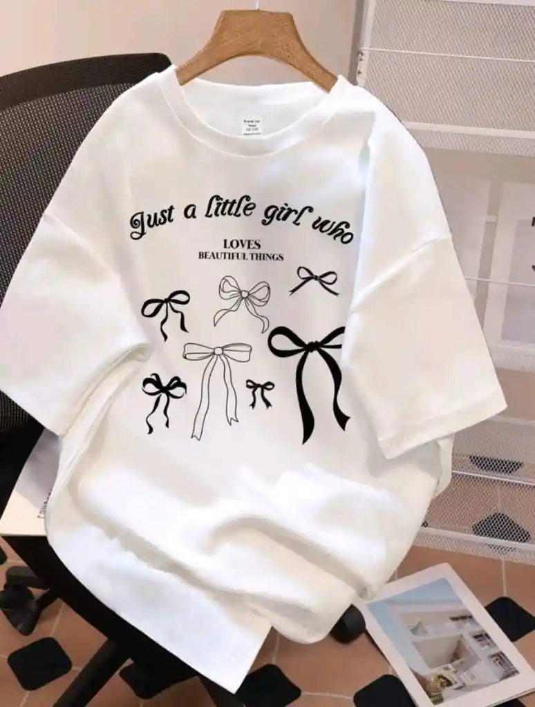 Camiseta holgada de punto con estampado de lazo, de estilo casual y sencillo, adecuada para adolescentes en verano Material: 62% Poliéster, 34% Algodón, 4% Elastano