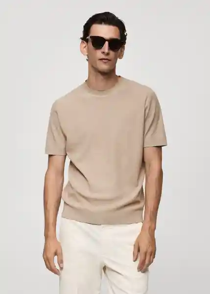 Bajo Recto, Cuello Redondo, Diseño Recto, el Modelo Mide 190 cm y Lleva Una Talla M, Manga Corta, Tejido de Punto Fino Con Microestructura, Terminaciones de Canalé en Cuello, Manga y Bajo - 77074445_06.