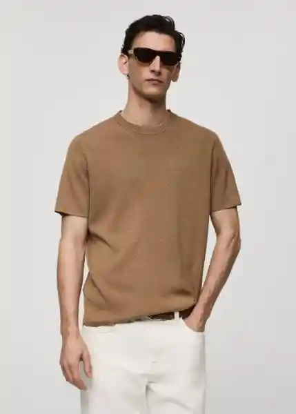 Bajo Recto, Cuello Redondo, el Modelo Mide 185 cm y Lleva Una Talla M, Manga Corta, Tejido de Punto Fino, Tejido Mezcla de Algodón - 77080583_09.