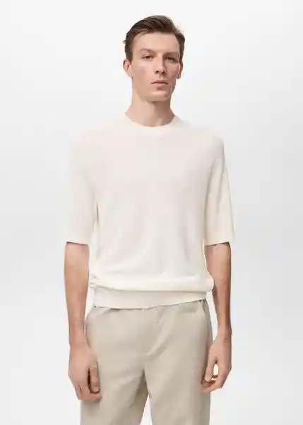 Cuello Redondo Cuello Mangas y Bajo Acabados en Canalé el Modelo Mide 190 cm y Lleva Una Talla M Manga Corta Regular Fit Tejido de Punto Estructura Tejido Mezcla de Algodón y Viscosa - 87067897_05.