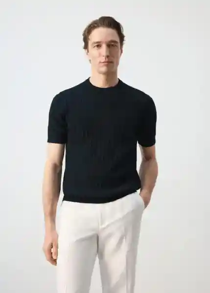 100% Algodón Cuello Redondo Cuello Mangas y Bajo Acabados en Canalé Essentials: Made to Last Manga Corta Slim Fit Tejido Punto Fino Con Microestructura de Ochos - 27075939_57.