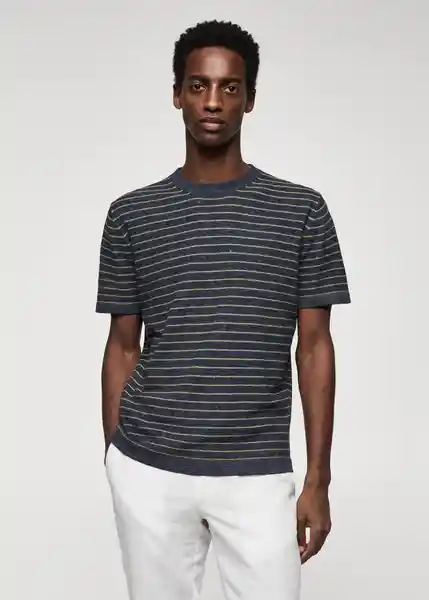 Acabado Con Textura Bajo Recto Cuello Redondo el Modelo Mide 190 cm y Lleva Una Talla M Estampado de Rayas Horizontales Manga Corta Straight-Fit Tejido de Punto Fino Tejido Mezcla de Algodón y Poliester Reciclado Terminaciones Elásticas - 47035911_54.