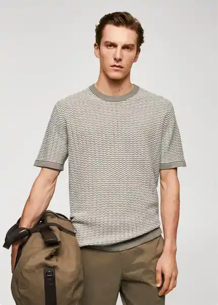 100% Algodón Cuello Redondo Diseño Recto el Modelo Mide 190 cm y Lleva Una Talla M Estructura en Forma Zig Zag Manga Corta Regular Fit Tejido de Punto Fino Terminaciones Elásticas en Contraste - 57052511_35.