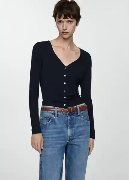Cierre de Botones en la Parte Delantera, Cuello Pico, Diseño Recto, la Modelo Mide 177 cm y Lleva Una Talla S, Manga Larga, Tejido de Lyocell - 77074442_69.