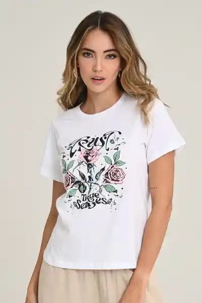 En Tejido de Punto Fondo Entero Con Estampado Localizado en Frente Cuello Redondo Manga Corta.