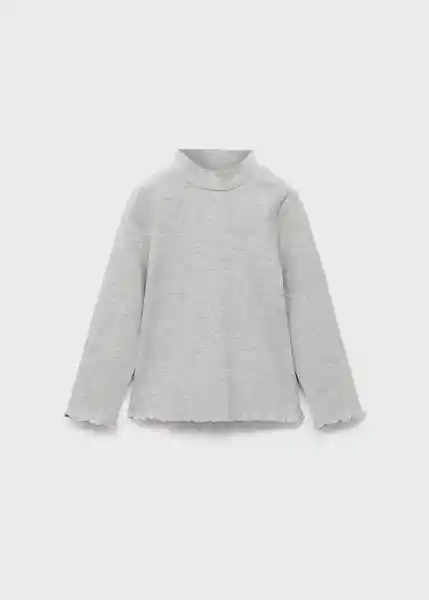 Cuello Alto Diseño Recto Manga Larga Tejido de Algodón Tejido de Canalé Tejido Elástico Terminaciones Festoneadas - 17006340_91.