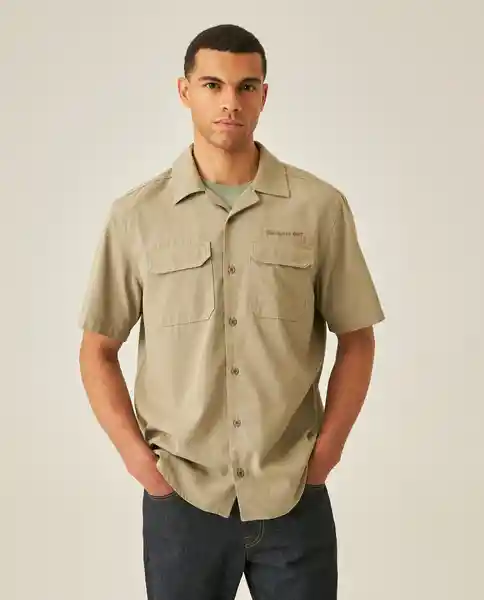 Masculina Manga Corta Classic Fit en Lyocell 63% y Algodón 37%. Tela Con Leve Textura. Bolsillos de Parche Con Tapa. Cuello Con Mini Solapa. Bordado en Pecho (Logo en Punto Corazón Apenas Arriba de Bolsillo Tipo Parche). Botones Marcados Tono a Tono. Perilla Incluida. Marquilla Tejida en Costado. Construcción Con Lyocell Dominante. Silueta Classic Fit. Ean- 611H034Ver170619 Plu- 1111133247435.