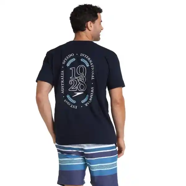 Conoce la Camiseta Manga Corta Vintage Harbor Para Hombre Esta Camiseta Azul Oscura de Silueta Clásica y Cuello Redondo en Rib es Ideal Para Usar en tu Día a Día Con Jeans Siempre Que Quieras Sentirte Cómodo y Fresco o Puedes Usarla Para ir a Tus Entrenamientos en la Piscina o el Gimnasio Acompañado de Prendas Deportivas. Esta Camiseta Manga Corta Azul Oscura Está Fabricada Con Los Más Altos Estándares de Calidad en Algodón 100% Para Brindar Comodidad y Frescura. Cuenta Con Estampado -Speedo International 1928- Blanco y Azul en la Parte Trasera y en el Frente Tiene Nuestro Icónico Logo Speedo Pequeño un Diseño Que Podrás Combinar Facilmente Con Otras Prendas.