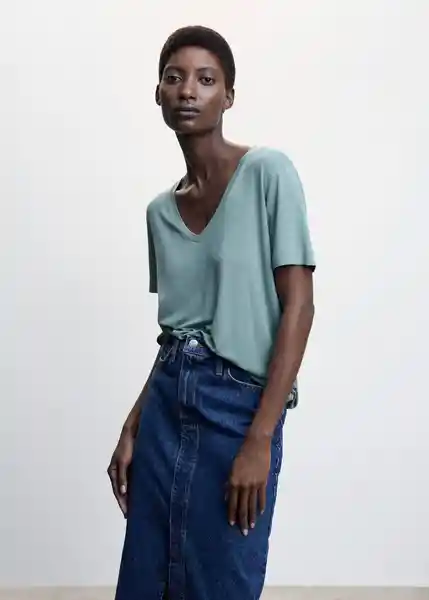 Diseño Recto Disponible Plus Escote de Pico Manga Corta Tejido Fluido - 47085843_50.