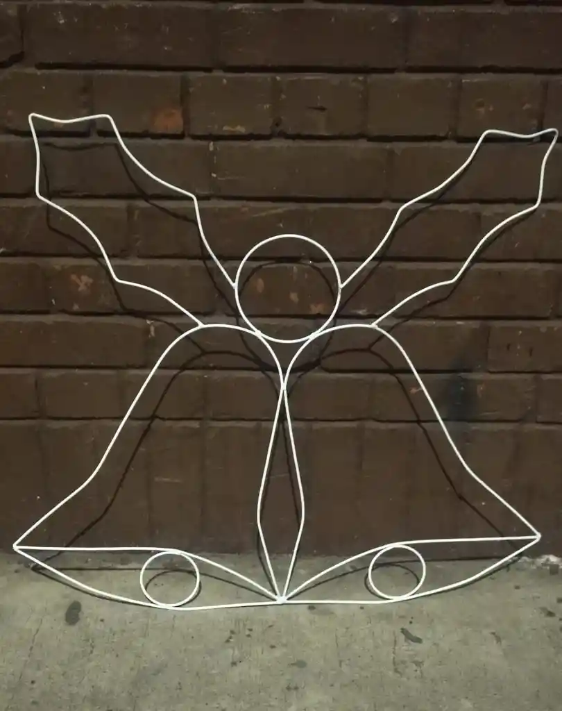 Estructura metálica de campanas medianas navideñas para interiores y exteriores. Esta pintada en pintura electroestática de alta resistencia de color blanco, ideal para instalarle manguera LED o guirnalda. Sus medidas son: ALTO: 74 cm ANCHO: 83 cm Figura Plana