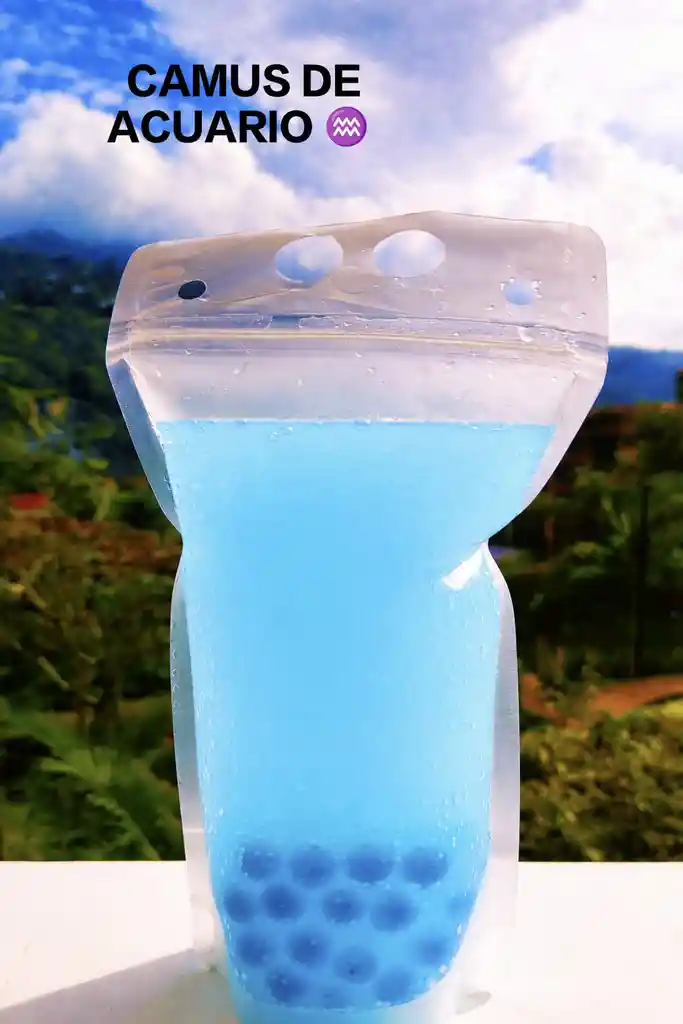Cóctel a base de vodka sabor Curasao, con perlas explosivas comestibles sabor Chicle.