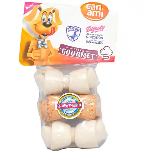 Can Ami Hueso Digesty Pague 2 Lleve 3 es un Hueso Realizado a Base de Carnaza 100% Natural Con un Relleno de Harina de Carne.