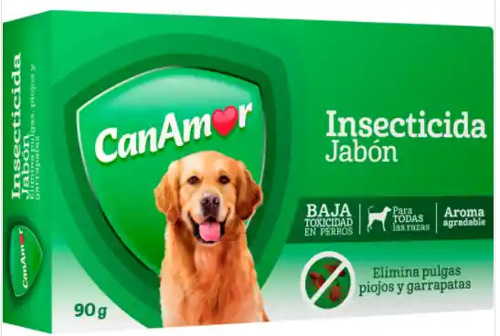 El jabón CanAmor Insecticida es ideal para eliminar pulgas, piojos y garrapatas. Baja toxicidad, seguridad en su aplicación Nuevo diseño de jabón para mejor aplicación Para uso en todas las razas de perros Aroma agradable Efecto residual del activo (D fenotrina) para mayor acción a lo largo de los días