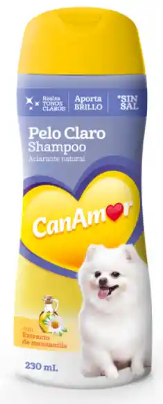 El shampoo CanAmor Pelo Claro es ideal para pelajes claros. Con extracto de manzanilla, que ayuda aclarar de forma natural. Realza tonos claros y deja el pelo mas brillante. Sin sal Sin parabenos ni siliconas Cruelty free pH neutro especial para la piel de las mascotas Aroma agradable