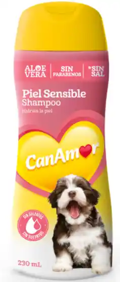 El shampoo CanAmor Piel Sensible es ideal para para animales con piel sensible . Con alto poder hidratante de Aloe vera. Sin sulfatos, especial para pieles sensibles y delicadas de perros y cachorros Sin sal Sin parabenos ni siliconas Cruelty free pH neutro especial para la piel de las mascotas Aroma agradable Empaque en sachet, lo que facilita su transporte en los viajes