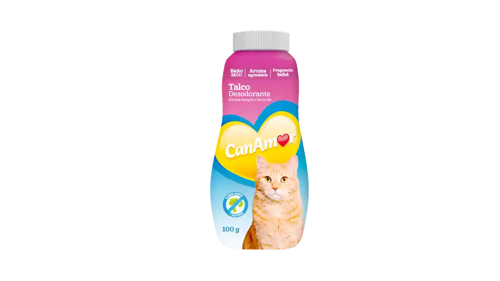 El talco CanAmor Desodorante para Gatos fue diseñado especialmente para el pelaje del gato y es ideal para eliminar hongos y bacterias garantizando la higiene del animal entre baños Exclusiva fragancia a bebé Aroma agradable Baño seco, especial uso entre baños Brinda sensación limpieza Sin parabenos
