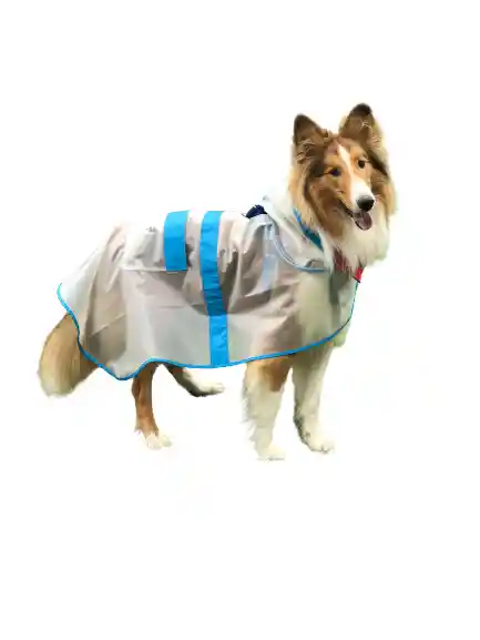 Capa Impermeable Transparente Con Borde de Color Azul, Perfecto Para la Lluvia, Sin Mangas y Con Cierre de Velcro.