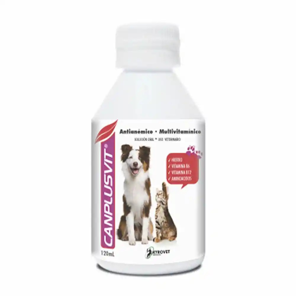 CAN-PLUSVIT FCO X 120 ML Descripción: Can-PlusVit es un suplemento multivitamínico en presentación líquida, diseñado para fortalecer la salud y el bienestar de perros de todas las edades. Su fórmula balanceada aporta vitaminas, minerales y aminoácidos esenciales para mantener una nutrición óptima y apoyar el sistema inmunológico. Beneficios: Favorece el crecimiento y desarrollo saludable en cachorros. Mejora la vitalidad y energía en perros adultos y senior. Contribuye al fortalecimiento del sistema inmunológico. Ayuda a mantener piel y pelaje saludables. Fácil administración en forma líquida para mejor absorción. Indicaciones: Administrar según indicaciones del médico veterinario. Puede mezclarse con el alimento o administrarse directamente en la boca del perro. Conservar en un lugar fresco y seco, fuera del alcance de los niños.