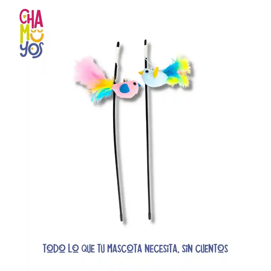 caña para gatos, cuenta con cuerdas, juguete de felpa, material poliester, caucho, color azul, rosado, para gatos pequeños, largo 46cm, ancho 7 cm