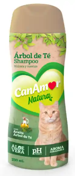 El shampoo CanAmor Natura árbol de té para gatos, fue especialmente pensado para la limpieza del pelaje del gato, contiene propiedades naturales gracias a su aceite árbol de té. Con Aloe vera que ayuda a la hidratación del pelaje Hidrata y suaviza pH neutro especial para la piel de las mascotas Aroma agradable Cruelty free Sin parabenos Sin sal