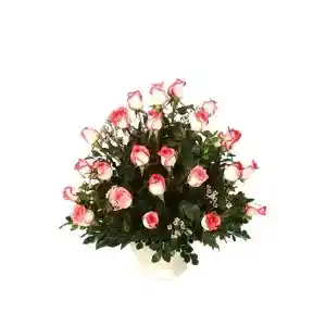 Canasta de aprox. 30 rosas y 20 varas de follaje. La flor puede ser sustituida dependiendo la disponibilidad de color y del producto “Mensaje Personalizado” máximo de 30 caracteres (Dejar el mensaje en el chat, los comentarios no se previsualizan para la tienda por lo que si se dejan allí no podrá ser incluido)