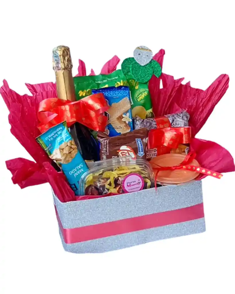 Celebra la temporada con nuestra Canasta navideña con snacks y bebida, el regalo perfecto para compartir momentos especiales. Esta canasta incluye una variedad de snacks deliciosos y una bebida espumosa que encantará a todos. Ideal para reuniones familiares, amigos o la oficina, es el detalle que hará tu Navidad inolvidable. ¡Pide ahora y disfruta de un combo único, lleno de sabor y alegría!