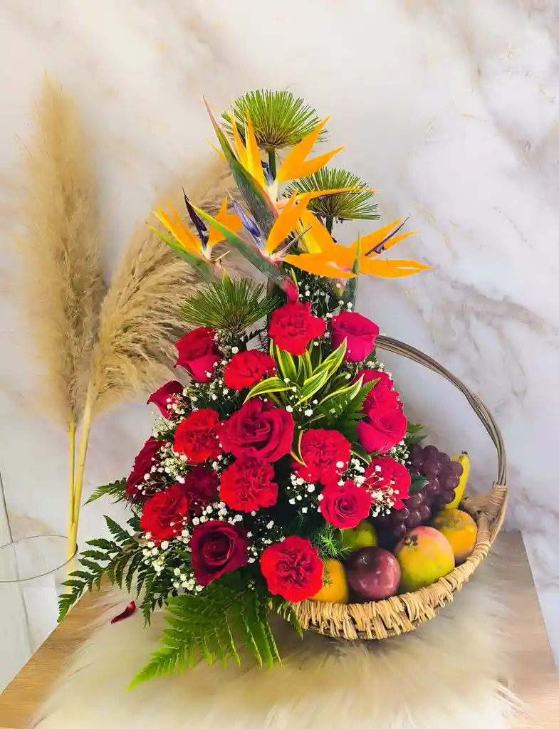 HERMOSA CANASTA CON FLORES Y FRUTAS