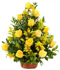 Canasta de 12 rosas amarillas con 20 varas de diferentes follajes . La flor puede ser sustituida dependiendo la disponibilidad de color y del producto “Mensaje Personalizado” máximo de 30 caracteres (Dejar el mensaje en el chat, los comentarios no se previsualizan para la tienda por lo que si se dejan allí no podrá ser incluido)