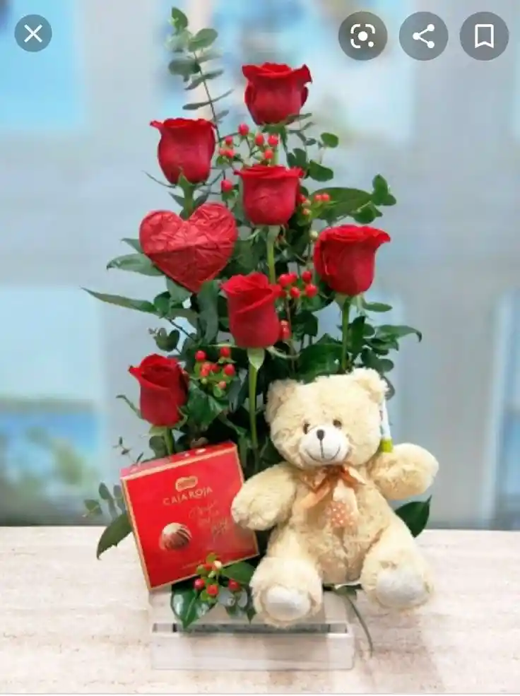 Canasta de rosas con chocolates y peluche Un hermoso detalle en canasta que combina la elegancia de las 12 rosas con la dulzura de los chocolates y un tierno peluche, perfecto para sorprender a un ser querido. Nota: La flor puede ser sustituida dependiendo de la disponibilidad de color y del producto. "Mensaje Personalizado" máximo de 30 caracteres (Dejar el mensaje en el chat, los comentarios no se previsualizan para la tienda, por lo que si se dejan allí no podrá ser incluido).