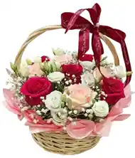 Canasta de rosas Un encantador detalle floral en canasta con 12 rosas en el color de tu elección, perfecto para cualquier celebración o momento especial. Nota: La flor puede ser sustituida dependiendo de la disponibilidad de color y del producto. "Mensaje Personalizado" máximo de 30 caracteres (Dejar el mensaje en el chat, los comentarios no se previsualizan para la tienda, por lo que si se dejan allí no podrá ser incluido).