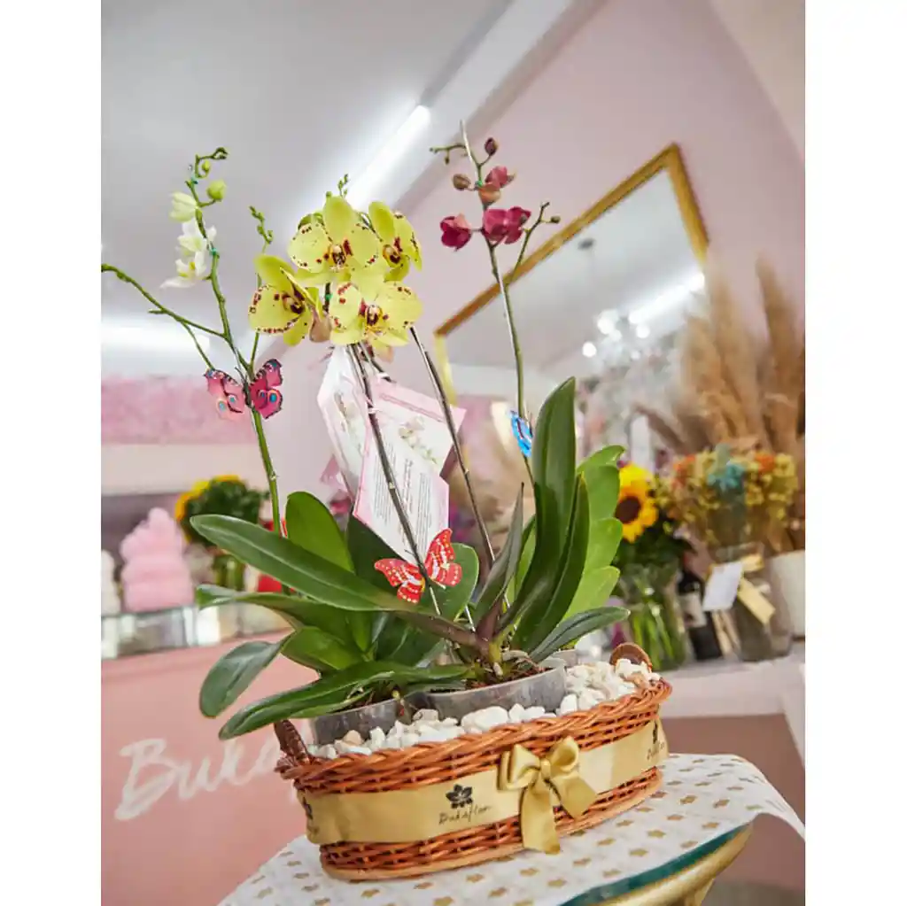 ¡Nuestras Favoritas! En la actualidad, regalar una orquídea tiene un significado de belleza y una demostración de aprecio y admiración. Y si es una planta es presagio de amor eterno. Y ¿qué significará si son tres plantas de orquídea? “Nunca antes se había visto un amor igual al que siento por ti; no cabe en mi corazón, ni tampoco en este universo”. Contiene: 3 Orquídeas Phaleanopsis en Canasto Doble Varas. Canasta Decorada con Piedras y Demás Accesorios. Instructivo de Cuidados. Tarjeta GRATIS.