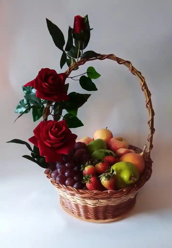 CANASTA DEL PARAISO ES UN HERMOSO DETALLE QUE SE REALIZA CON FLORES ARTIFICIALES QUE ADORNAN UNA CANASTILLA FABRICADA DE MANERA ARTESANAL, LA CUAL CONTIENE UNAS DELICIOSAS FRUTAS FRESCAS NATURALEA PARA DELEITAR TU PALADAR