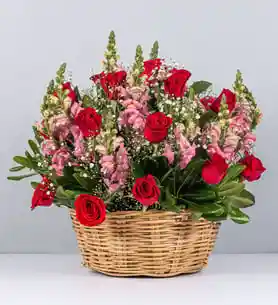 canasta de flores variadas Con Mensaje Personalizado, máximo de 30 caracteres (Dejar el mensaje en el chat, los comentarios no se previsualizan para la tienda por lo que si se dejan allí no podrá ser incluido)