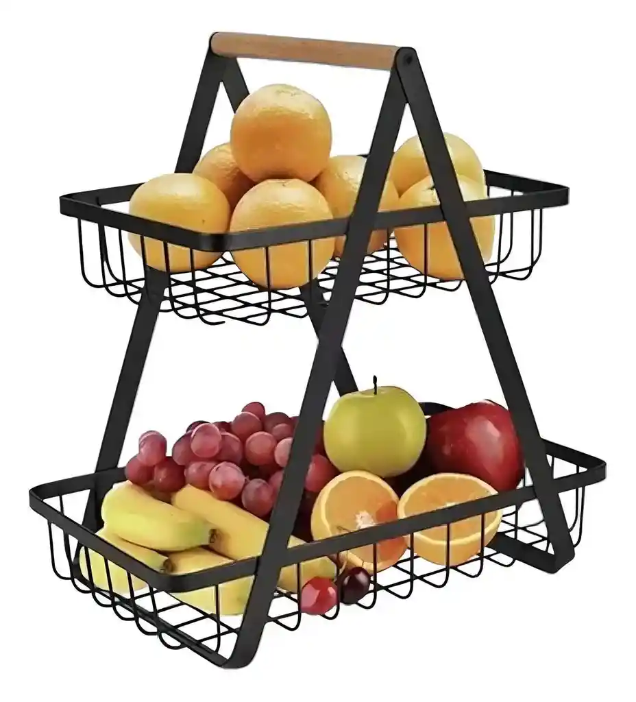 Este frutero de dos niveles es la combinación perfecta entre diseño rústico y funcionalidad moderna, ideal para optimizar el espacio en tu cocina, comedor o incluso oficina. Su estructura de metal con acabado en pintura electrostática negra garantiza durabilidad y resistencia, mientras que su mango de madera natural facilita el transporte y añade un toque decorativo sofisticado. Gracias a su diseño de rejilla abierta, permite una ventilación óptima para que las frutas y verduras se mantengan frescas por más tiempo, siendo también una solución versátil para organizar huevos, pan, artículos de papelería o productos de aseo con un estilo impecable. Ficha Técnica Material de la estructura: Metal de alta resistencia Acabado: Pintura electrostática negra mate (Anticorrosivo) Material del mango: Madera natural ergonómica Cantidad de niveles: 2 canastas independientes Altura total: 32 cm aproximadamente Largo de la base: 30 cm aproximadamente Ancho de la base: 18 cm aproximadamente Diseño: Rejilla ventilada para mayor frescura Uso recomendado: Frutas, verduras, panadería, huevos y organización de hogar u oficina Mantenimiento: Fácil limpieza con paño húmedo Términos de garantía: Para defectos de fábrica o retractos: Por favor revise el producto apenas lo reciba y antes de usarlo. No aplican ley de retracto o defectos de fábrica luego de usar el producto. Se manejan máximo 5 días para reportar defectos de fábrica (por ejemplo, producto funciona mal, piezas faltantes, rotas, etc). Para hacer efectiva la devolución el producto debe devolverse con el empaque original, el cual debe estar en buen estado, incluir todos los documentos y las partes completas y sin daños.