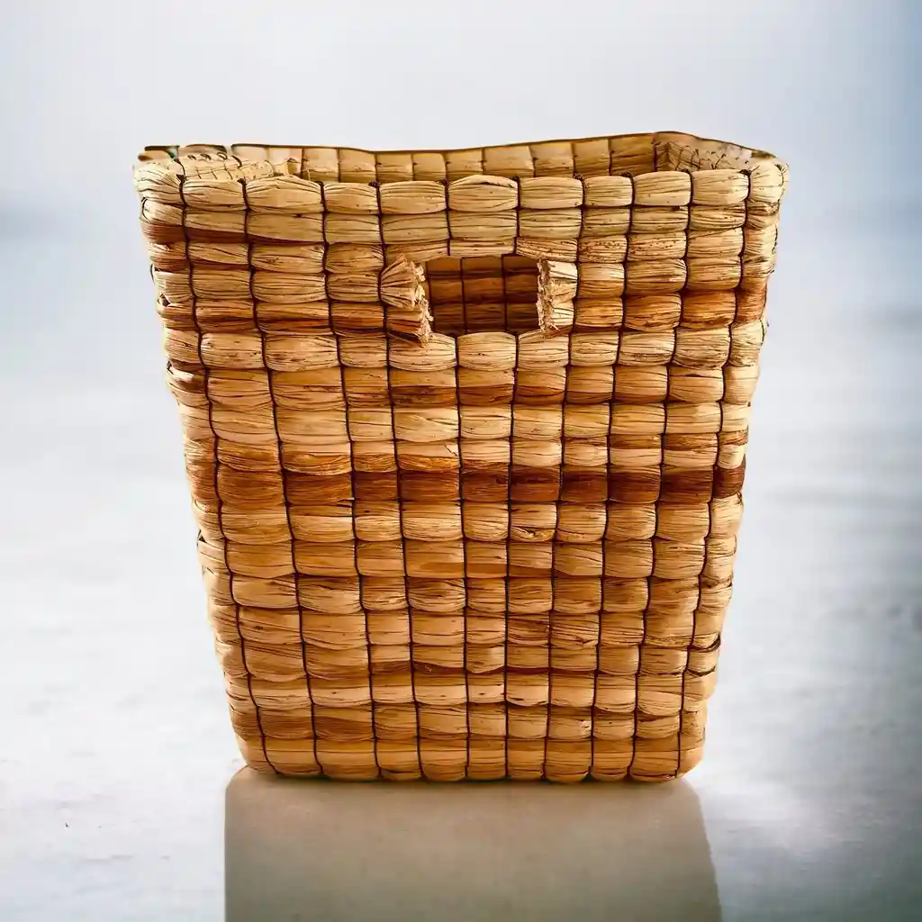 Un canasto sencillo para guardar y organizar tejido por artesanos en fibra de junco.