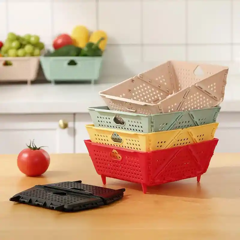 La Canasta Plegable 🧺✨ es ideal para organizar ropa 👕, juguetes 🧸, utensilios 🍴 o cualquier objeto en tu hogar 🏠. Su diseño plegable 📐 permite guardarla fácilmente cuando no se usa 🛋️, ahorrando espacio 📦 y manteniendo el orden en cualquier habitación 🛏️. Ligera 🎈, resistente 💪 y fácil de transportar 🚶♂️, combina funcionalidad 👍 y practicidad 🛠️ en un solo producto. 🔹 Organiza ropa, juguetes y utensilios fácilmente 👕🧸🍴 🔹 Diseño plegable para ahorrar espacio 📐📦 🔹 Ligera, resistente y fácil de transportar 🎈💪🚶♀️ 🔹 Ideal para cualquier habitación o espacio del hogar 🛏️🏠 Son ideales para almacenar y organizar verduras, frutas u otros alimentos en la cocina. Están hechas de plástico resistente y cuentan con orificios que permiten la ventilación, lo que ayuda a mantener los productos frescos por más tiempo. Ventajas principales: Plegable y ahorradora de espacio: Cuando no se usa, se puede doblar para guardarla fácilmente. Ligera y portátil: Fácil de mover y transportar. Versátil: Además de verduras, se puede usar para frutas, utensilios o artículos de despensa. Fácil de limpiar: El material plástico permite un lavado rápido y sencillo. Estas canastas son prácticas para mantener el orden en la cocina y optimizar el espacio de almacenamiento.