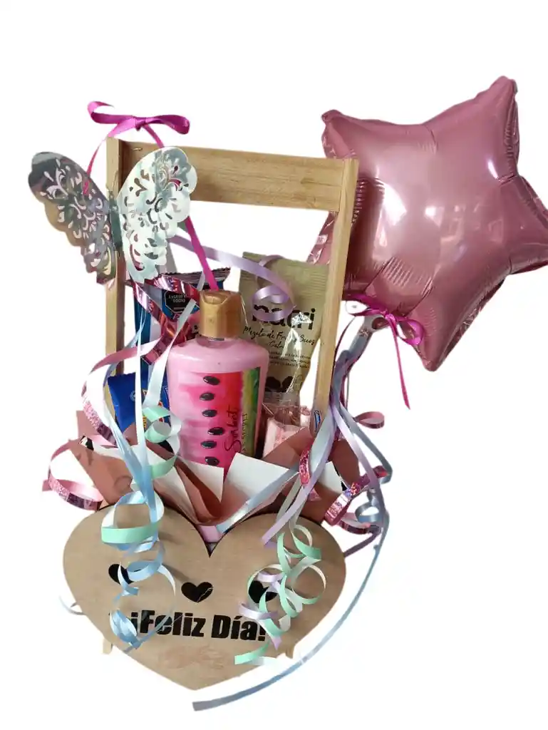 Hermosa canasta decorativa con globo metalizado “Feliz Cumpleaños”, globo estrella y selección especial de detalles y dulces 🎈💖 Incluye decoración elegante, cintas y presentación lista para regalar ✨ Un detalle delicado, femenino y lleno de amor para hacer inolvidable su día 💕 Contenido: Caja madera en forma de corazón Globo metalizado feliz cumpleaños Globo metalizado pequeño figura Crema VS Mix frutos secos Galletas club social Mini choco kick Masmelo individual ... Decoración general