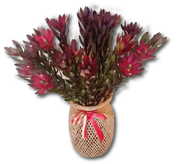 Canasto elaborado en palma tirite, tejido por indios artesanos del amazonas, con cinta roja con verde en tela con flores viva arbórea naturales, dura aproximadamente 6 meses y se pueden cambiar las flores en el momento que desee el usuario
