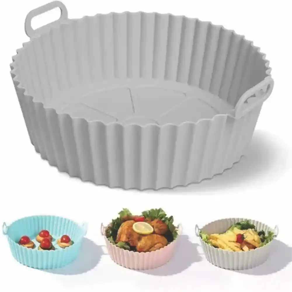 EL BAÚL DE MATIAS Fiable y seguro: hecho de material de silicona de calidad antiadherente, no tóxico, sin BPA, material altamente resistente al calor que soporta hasta 482.0 °F. Tamaño: - Diámetro Inferior: 16 cm - Diámetro Superior: 20 cm - Alto: 5 cm Respetuoso con el medio ambiente: en lugar de papeles de pergamino desechables y otros forros de freidora de aire, mantiene tu comida fresca y se abstenga de cualquier peligro de fuego innecesario en papeles de pergamino altamente inflamables. La olla de silicona es una opción mucho mejor para hacer tu vida más saludable y ecológica Fácil de limpiar: nuestra olla de silicona es tan suave y flexible que solo tienes que voltearla del revés y lavarla con agua tibia. El diseño único del patrón hace que el aceite residual o la grasa fluya fácilmente cuando estás limpiando. También es apto para lavavajillas. Rango aplicable: nuestra olla de silicona no solo se puede utilizar para freidora de aire, sino que también es segura para horno, microondas, congelador y lavavajillas. No solo puede ser un accesorio para freidora de aire, sino que también puede ser un plato de fruta. Diseño novedoso: cada accesorio de freidora de aire de silicona está diseñado con forma redonda, como forro de cupcakes, y adopta un borde alto, que puede proteger los lados de la freidora y evitar que la comida se pegue en ellos, lo que te ofrece una buena experiencia de uso. PRODUCTO DISPONIBLE EN COLORES SURTIDOS, SE ENVIA DE ACUERDO A DISPONIBILIDAD