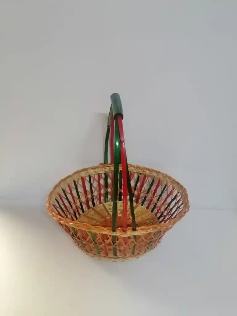 Canasto Elaborado por Nuestros Artesanos a Mano. Medidas Largo 32 cm, Ancho 25 cm, Alto incluida la Manija 35 cm