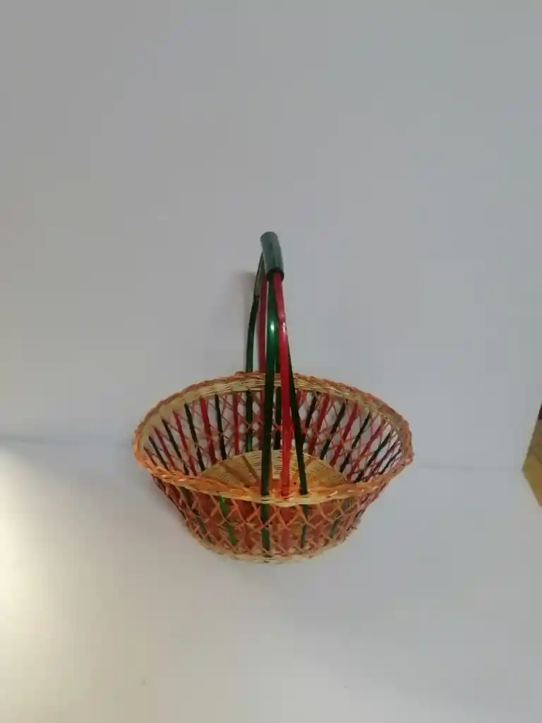 Canasto Elaborado por Nuestros Artesanos a Mano. Medidas Largo 26 cm, Ancho 23 cm, Alto incluida la Manija 30 cm