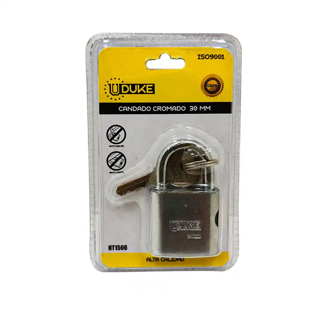 CANDADO 30MM CROMADO PULIDO EN BLISTER Uduke (HT1506)