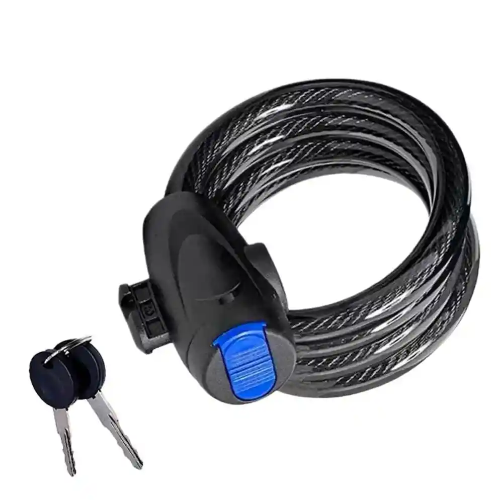Protege tu bicicleta o tu moto con nuestro Candado de Cable, diseñado para ofrecerte tranquilidad y seguridad mientras disfrutas de tus paseos. Este candado es ideal para quienes buscan una solución confiable y práctica para proteger su bicicleta en cualquier lugar. CARACTERÍSTCAS DESTACADAS * Cable de Alta Resistencia - Fabricado con cables de acero trenzado ofrece una excelente resistencia a cortes y manipulaciones. * Fácil de Usar - Su diseño flexible permite adaptarse a diferentes tipos de bicicletas y objetos, facilitando su uso en cualquier situación. * Recubrimiento de PVC - El cable está recubierto con una capa de PVC para evitar daños en el marco de tu bicicleta y prevenir la corrosión. * Portabilidad - Ligero y compacto, puedes llevarlo fácilmente en tu mochila o fijarlo a tu bicicleta con el soporte incluido. EL TAPÓN PLÁSTICO DE LA CERRADURA PODRÁ SER DE COLOR AZUL O ROJO ALEATORIAMENTE DIMENSIONES: * Longitud del cable - 80cm * Diámetro - 85mm