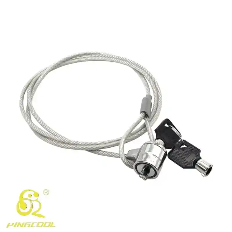 Guaya de seguridad con llave para portátil o monitor. El cable es resistente al corte y está cubierto con plástico transparente que se enrolla sobre un objeto seguro como el escritorio y se engancha fácilmente en la ranura de seguridad de la computador portátil. El candado de seguridad para computadora portátil o laptop, se abre por medio de una llave, cuenta con un cable de acero de 3 mm de diámetro con cubierta de plástico y con longitud de 1,5 m. – Cable flexible de acero forrado en plástico. – Tiene dos llaves que no se pueden copiar. – Protege su portátil o monitor de robos. – Fácil de usar. – Medidas del cable:1,5 m