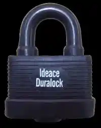 Candado en acero laminado con protección plástica. Doble bloqueo. Aro en acero endurecido. Mecanismo y llaves en latón